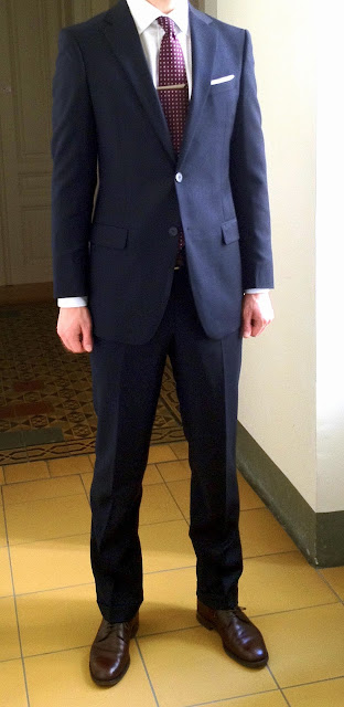 Overall, I have to say the suit is really nice and compares well to Indochino. Especially the fabric, the cut and the construction are very convincing. I messed up the shoulder measurements a bit, they are just a bit too wide, but it’s not too obvious. What I don’t like that much are the strongly padded shoulders, more natural would be nice (update: natural shoulders are now standard, I had an earlier patch).