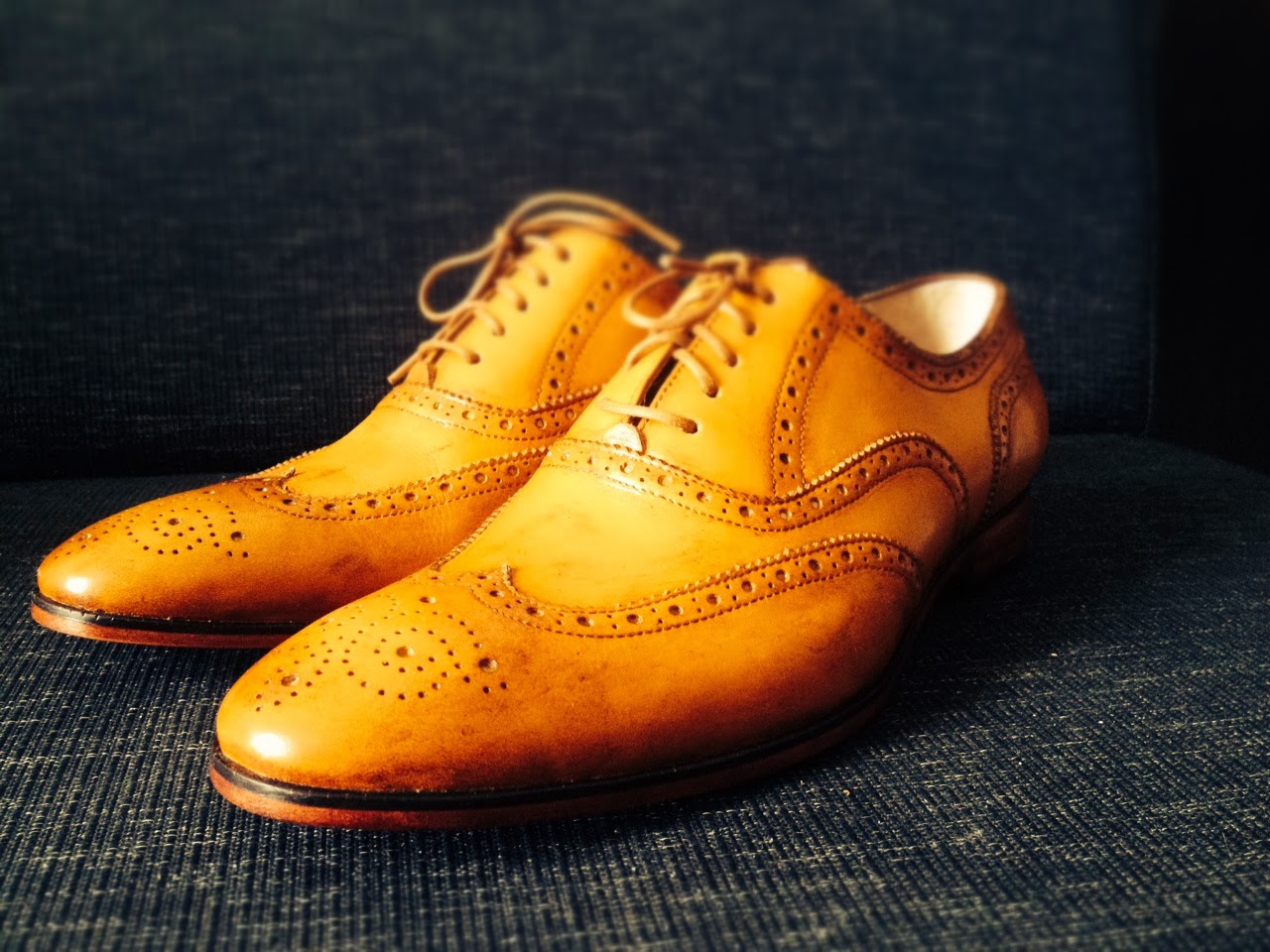 The tan colour and the wingtip broguing definitely make the shoe more casual – it will work extremely well with a pair of dark jeans and a blazer, but it also looks great with a blue suit (the lighter the blue, the better in this case). The only slightly negative drawback is the black welt – it clashes a bit with the tan colour. However, as my shoe was basically the final prototype for their new design, I can’t expect everything to be 100% perfect and I was assured the welts would be in line with the colour of the upper leather on all customer orders.